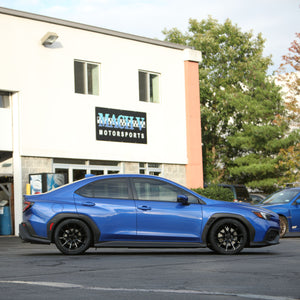 New! Mach V Crucial is a ten-spoke 18x9.5" wheel we developed with the goals of great looks, light weight, and high strength. Of course it has to fit Subarus perfectly, too. We think we succeeded on all fronts. The weight comes in at 19.5 pounds. The wheels clear all Subaru Brembo brakes, including both four-pot and six-pot.
