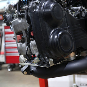 The Mach V EJ Header Heat Shield solves this problem. The all-stainless steel shield clips and bolts on to the right side of the block just like the stock plastic shield, guarding the plastic cam cover and wiring harness from radiant heat from the header. (It uses the factory bolt.) We highly recommend adding a Mach V heat shield any time you replace the stock manifold with an aftermarket header. We guarantee it'll fit with the Prosport header, as shown; it will probably fit most other aftermarket headers, but be prepared to trim or adjust the heat shield as needed if it's not a Prosport model.