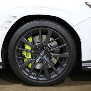Note that you MUST have wheels that will clear these calipers! The calipers are huge, and they are located even farther from the car/closer to the wheel than on the STI model. Wheels that we know will clear include: