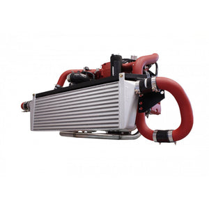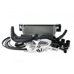 Each kit includes the intercooler core, support bracket, charge piping, silicone couplers and clamps, coolant overflow bottle, and all necessary installation hardware.