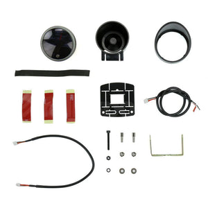 Reads 0-18 volts. Includes mounting cup, plug-and-play wiring harness with waterproof connector, instructions and decal.