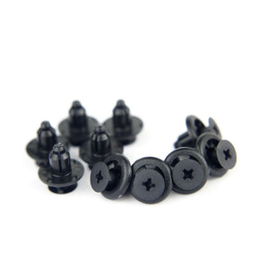 These are plastic push fasteners that help keep the fender liners in place. A quarter-turn with a Phillips screwdriver loosens them. They usually clip the fender liner to the bumper skin; they are used a few other places on the car, too. Pack of ten.