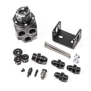 The Radium Multi Pump Regulator (MPR) is manufactured in the USA and is the ultimate solution for simple or complex high-flow fuel systems. Its unique port configuration make it ideal for combining multiple fuel pumps into a single feed line or vice versa. The MPR can be plumbed many different ways to suit most any installation; traditional flow-through or dead-end systems. Because of this flexibility, it is also perfect for Radium fuel surge tanks by eliminating the need for an extra "Y" fitting.