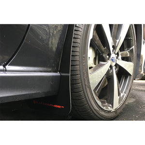 Choose from a black flap with your choice of logo color, or a red flap with white logo. Each Rally Armor UR mud flap set for 2017-2023 Subaru Impreza includes four UR mud flaps for all four corners of the vehicle, mounting instructions, and hardware.