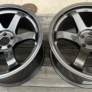 This terrific-looking wheel has an extremely concave appearance. The 18x9.5 +38 is big and wide, and fills out late-model Subaru wheel wells perfectly. 5x100 bolt pattern fits all 2002-2014 WRX, plus 2004 WRX STi. Forester XT, too. Center caps are included. 22.4 pounds each. Clears STi Brembo brakes with a small (5mm) wheel spacer. We do recommend replacement valve stems.