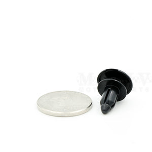 These push-fastener clips fit at the top of the OEM Subaru grille on "hawkeye" 2006-2007 Subaru Impreza, WRX, and STI cars.