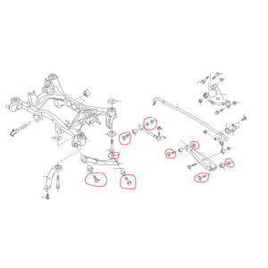 Hardware kit for the lateral and trailing arm links on the rear suspension of the 2008+ Impreza, WRX, and STI. Single-side kit includes: