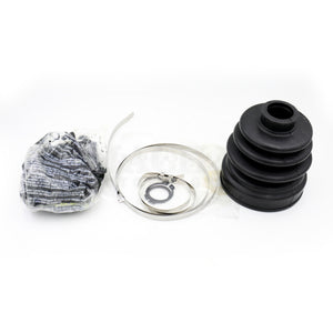 Comes with boot, two stainless band clamps, grease, and two circlips. (You'll use whichever one is the correct diameter for your car.)