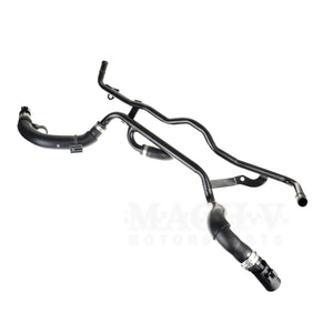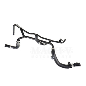 There are two different versions of this hose assembly. The 2006-2016 STI version consists of just the hard metal pipe. The 2017-2021 version includes the metal pipe PLUS three pre-attached rubber hoses, the outer two of which have plastic tube connectors.