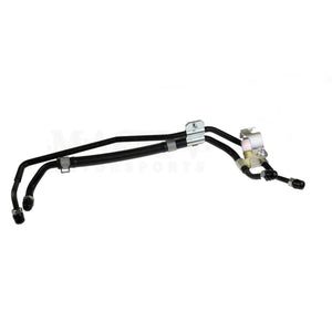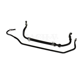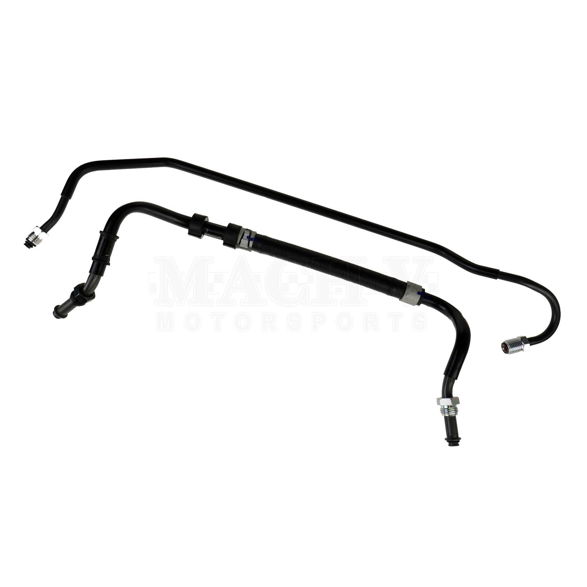 These metal lines are located on the steering rack, and can leak from behind the insulation. Replace your leaky factory lines without having to do the whole steering rack!
