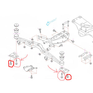 These bolts attach the rear differential outriggers to the chassis on GD/GG chassis Subaru cars. See the attached diagram for a look at where these go.