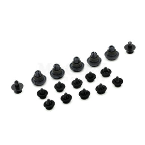 Kit are sold per side and include all the clips that come on factory side skirts. Seventeen fasteners per kit. Order two kits if you need all the fasteners for both sides.