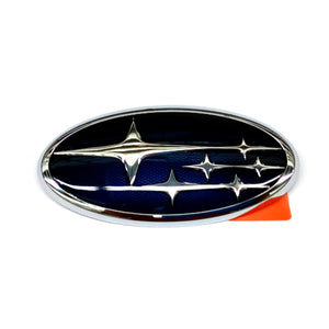 This is the factory Subaru six-stars logo badge that sits in the middle of the trunk on 2006-2007 WRX and WRX STI models. Deep blue/black background, chrome foreground. It installs into holes in the stock trunk, but you could cut off the posts and install it on an earlier car (or any other car, for that matter). Peel-and-stick adhesive is pre-installed on the back.